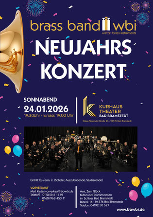 Seit der Gründung im Jahr 2001 hat sich die, in typisch englischer Besetzung spielende, Brass Band WBI einen hervorragenden Ruf in Hamburg und Schleswig-Holstein erspielt. Ein Brass Band Konzert bietet immer eine bunte Mischung aus Klassik, Märschen, Filmmusik, Originalkompositionen und Unterhaltungsmusik. mehr...